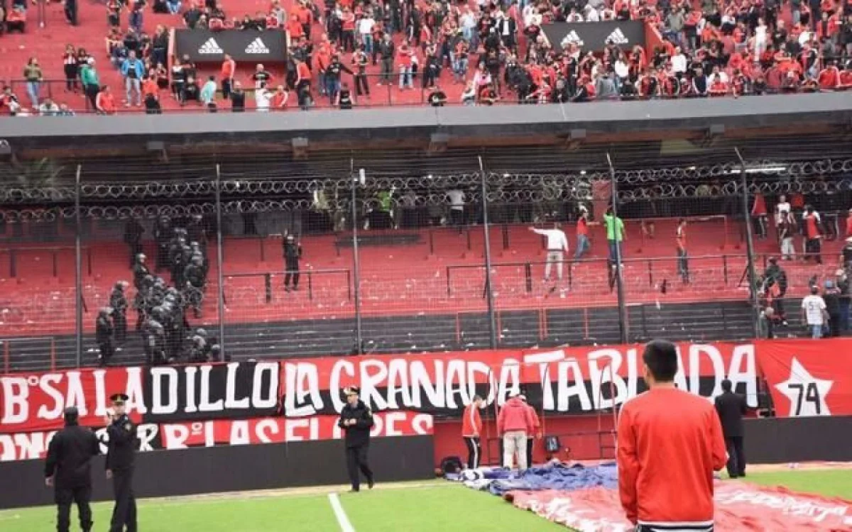 "Luego dos hombres de la barra brava invadieron el campo de juego por la puerta 2. Los empleados contuvieron la situación todo lo que pudieron, pero para cuando llegaron los agentes había unas 200 personas que intentaban ingresar al campo de juego”, informó el funcionario.