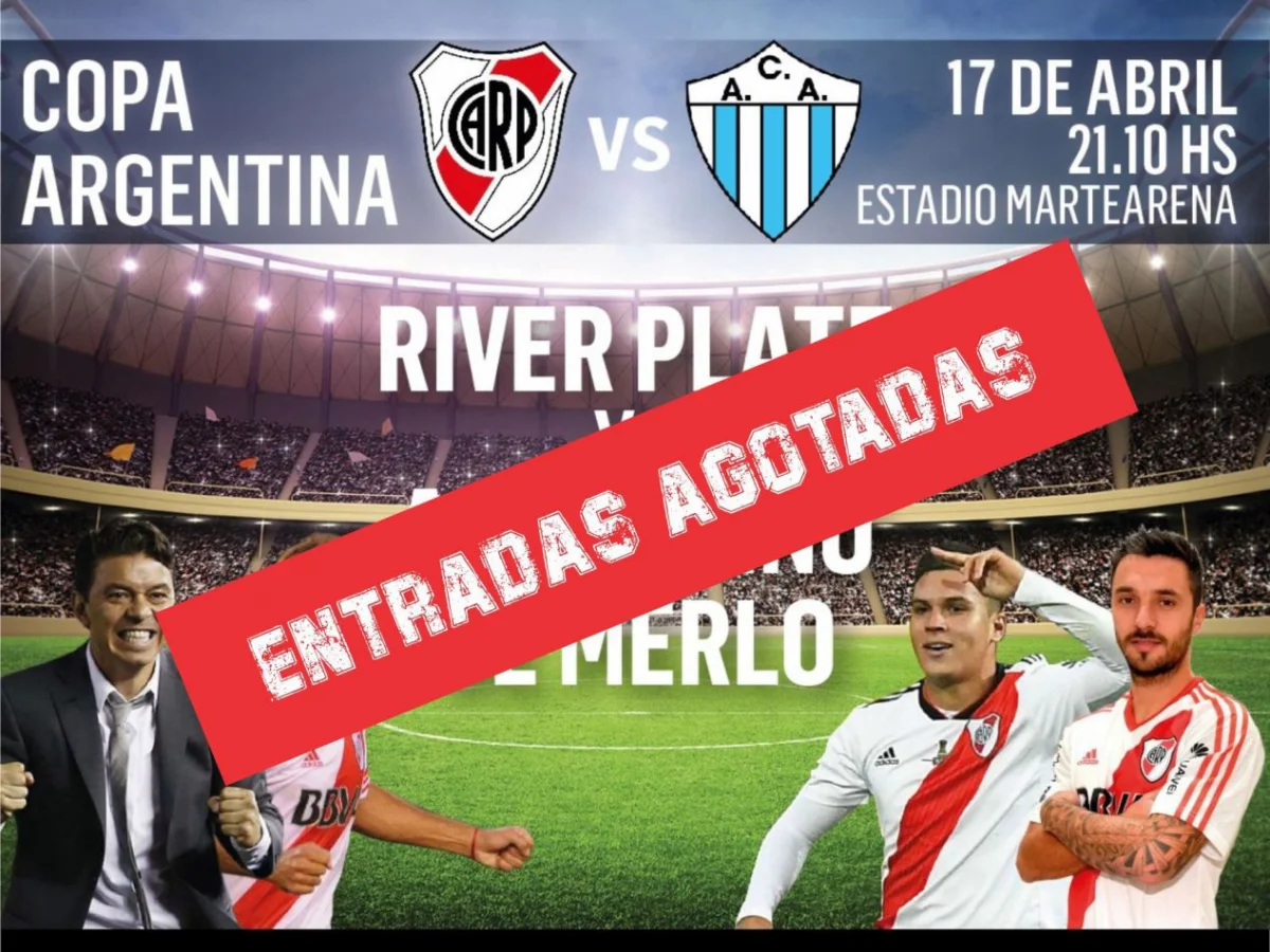 En menos de 28 horas quedaron agotadas las 18.000 entradas que salieron a la venta para presenciar en el estadio Martearena el partido entre River Plate vs. Argentinos de Merlo por los 32vos de Final de la Copa Argentina.