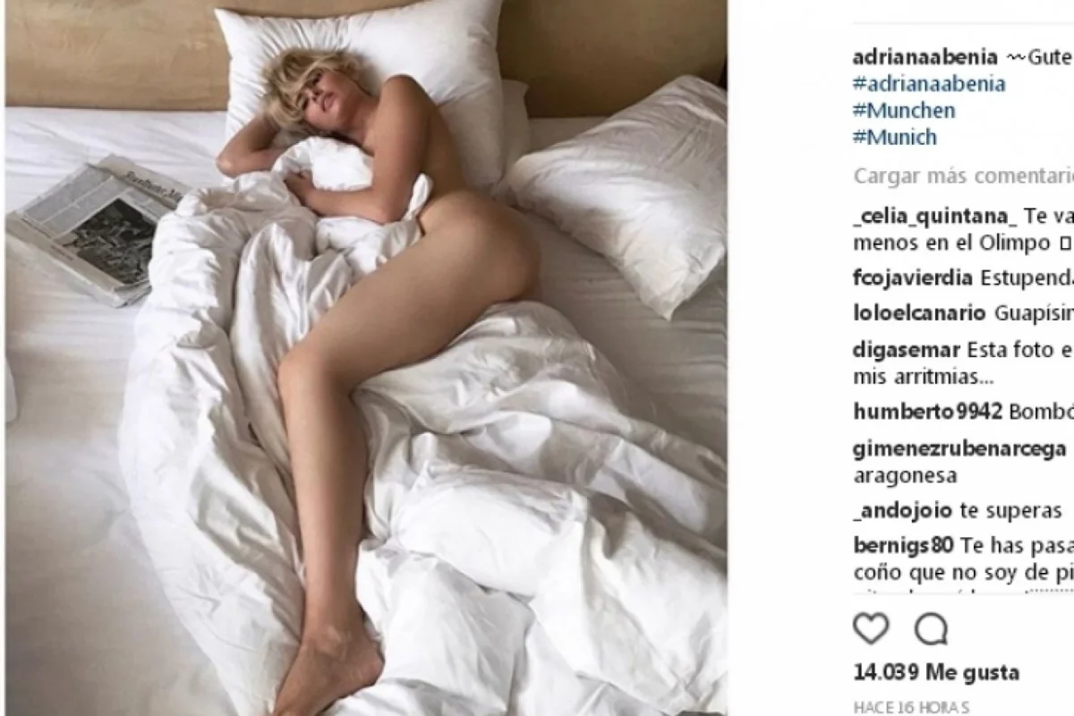 Instagram se ha convertido en este verano de 2017 en un catálogo de famosos y famosas desnudas. Y para empezar la semana, la reportera y presentadora Adriana Abenia, desde una cama en un hotel de Munich en Alemania nos deleita con su figura de ensueño.