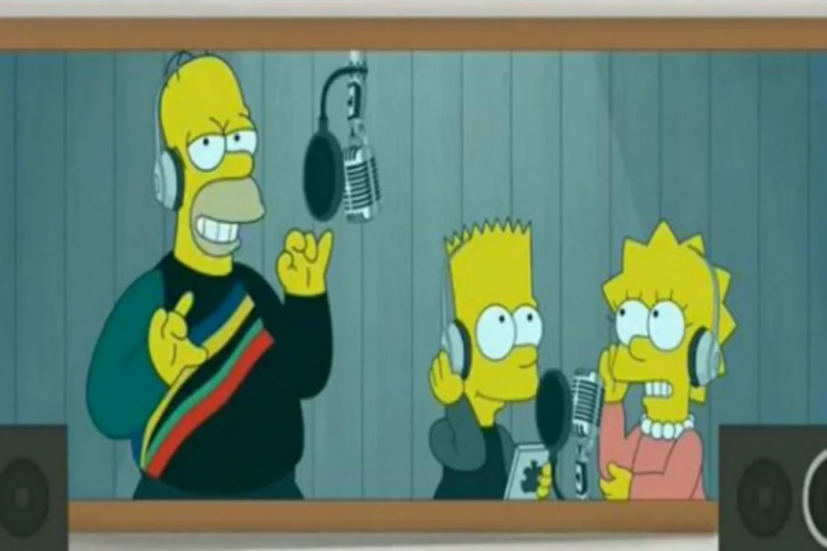 Es que el encargado de entonar la canción es nada más ni nada menos que Homero Simpson, acompañado de Bart y Lisa.