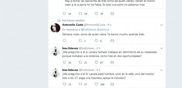 “Yo le recomendaría hoy a Inés Estévez que llame a Rosario, a la familia de los cinco argentinos muertos en el atentado terrorista en Nueva York. Inés, llamalos, explicales que la violencia de los de abajo justifica la de los de arriba, y que la violencia de los de arriba justifica la de los de abajo, y la violencia defensiva, a ver qué te dicen. Porque, ¿sabés qué? Estaban festejando los treinta años del colegio. Yo ahí no encontré ni violencia defensiva, ni ofensiva ni un carajo. Y un demente los pasó por arriba”, finalizó.