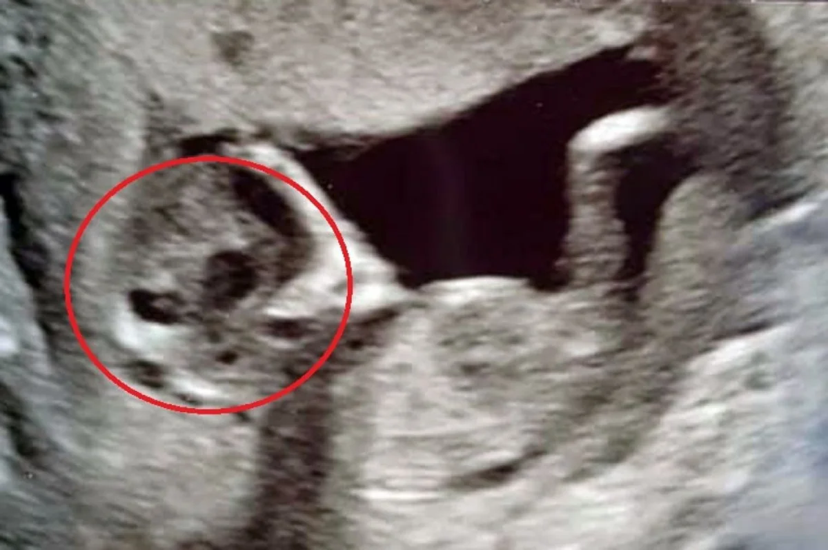 Sophie Scott, de 16 años, se sometió a una ecografía de rutina, pero entro en pánico cuando su compañero Stephen Roberts, de 24 años, dijo que la imagen mostraba una criatura parecida a ET detrás de su hijo en crecimiento.