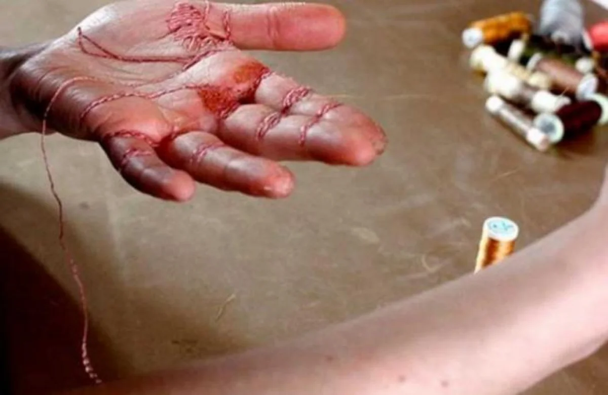 Las imágenes muestran a los participantes usando hilo de color para coserse la piel, ya sea en sus manos, piernas, incluso, en los labios.