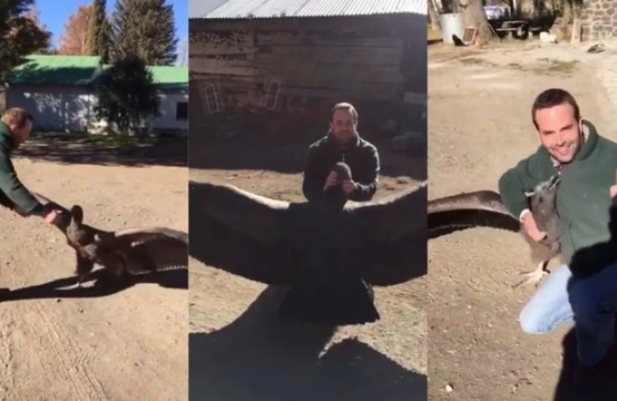 El cóndor apareció herido y de pichón en la estancia de Edgardo, en Loncopué, Neuquén. El hombre (que es quien aparece en el video) decidió ayudarlo a crecer, ya que el animal no puede valerse por sus propios medios.
