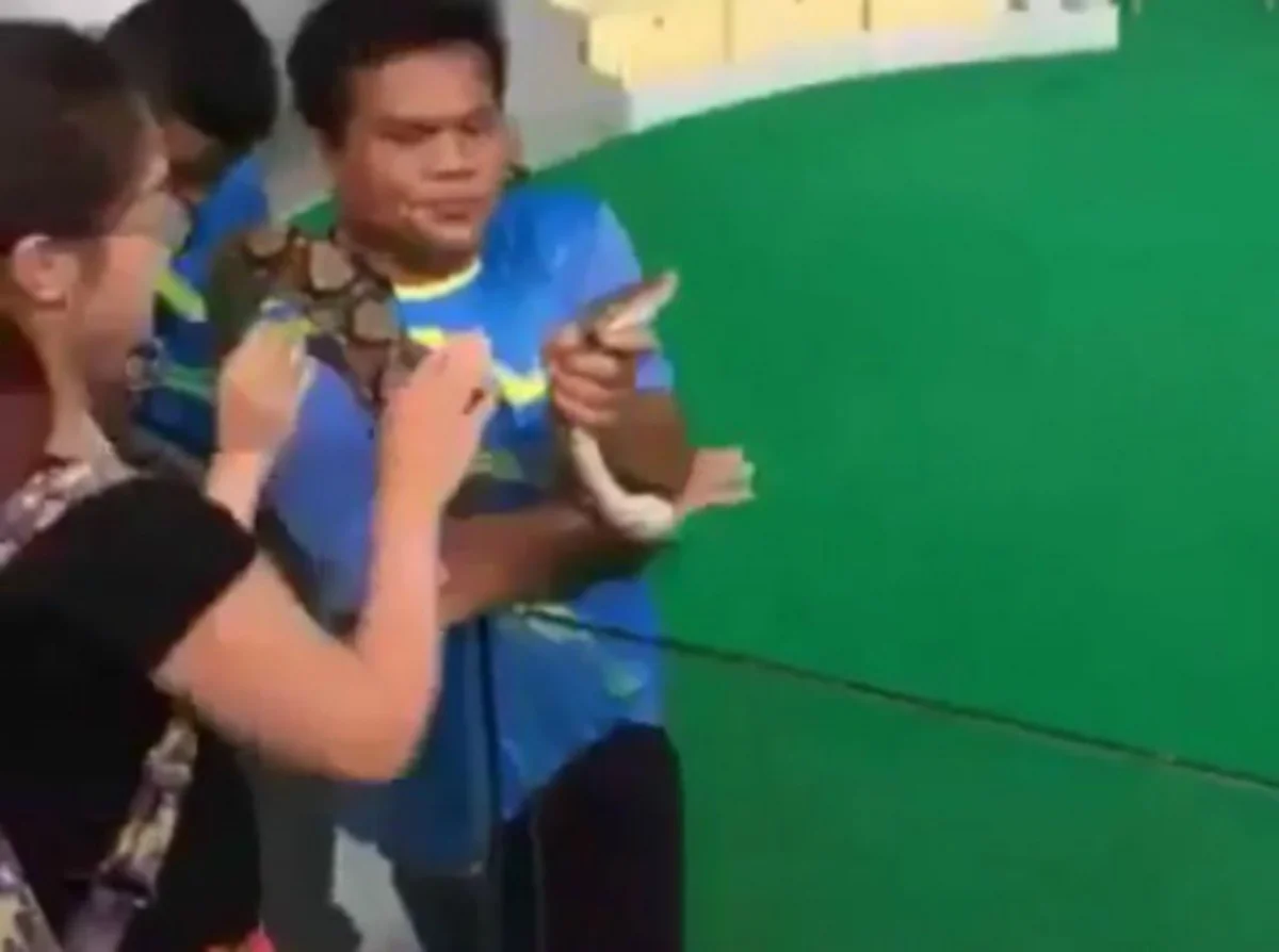 Cuando la mujer se acerca a besarle la cabeza a la víbora, esta ataca brutalmente a la mujer mordiéndole la cara. Se desconoce si la vicha era o no venenosa y qué es lo que sucedió con la joven.