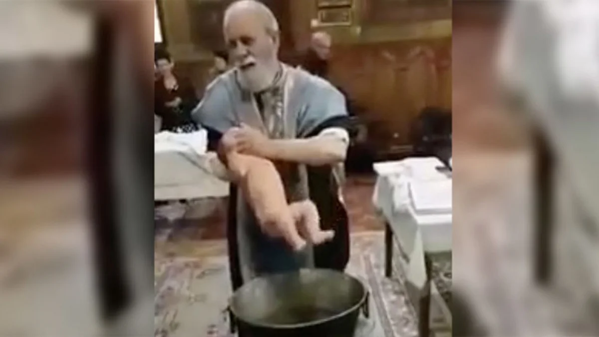 El sacerdote no pudo ocultar su irritación al no poder calmar al recién nacido. Después de varios intentos de sumergirlo en el agua, perdió los estribos.
