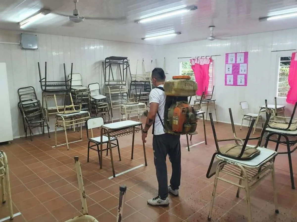 conjuntamente con el joven dirigente Facundo Domínguez de ese municipio,logrando asistir a dicha institución recorriendo las aulas, galerías y se prevé continuar con la fumigación en los patios externos cuando cesen las precipitaciones.