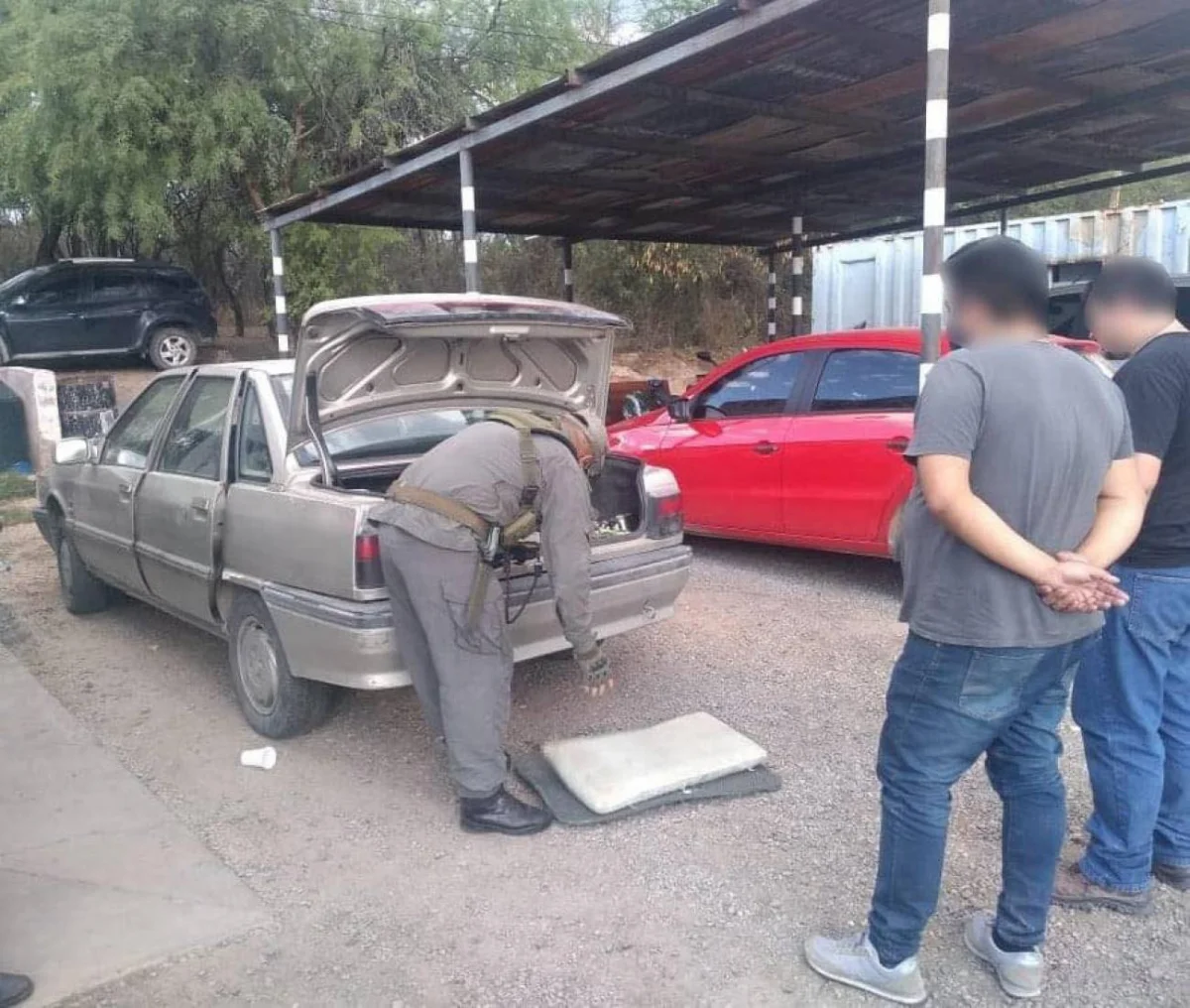 Los funcionarios lograron identificar a la persona involucrada y al rodado, el cual fue interceptado en el Peaje Cabeza de Buey para efectuar el registro correspondiente, observando que entre el asiento trasero y el tubo de gas se acondicionaban 14 paquetes de diferentes tamaños.