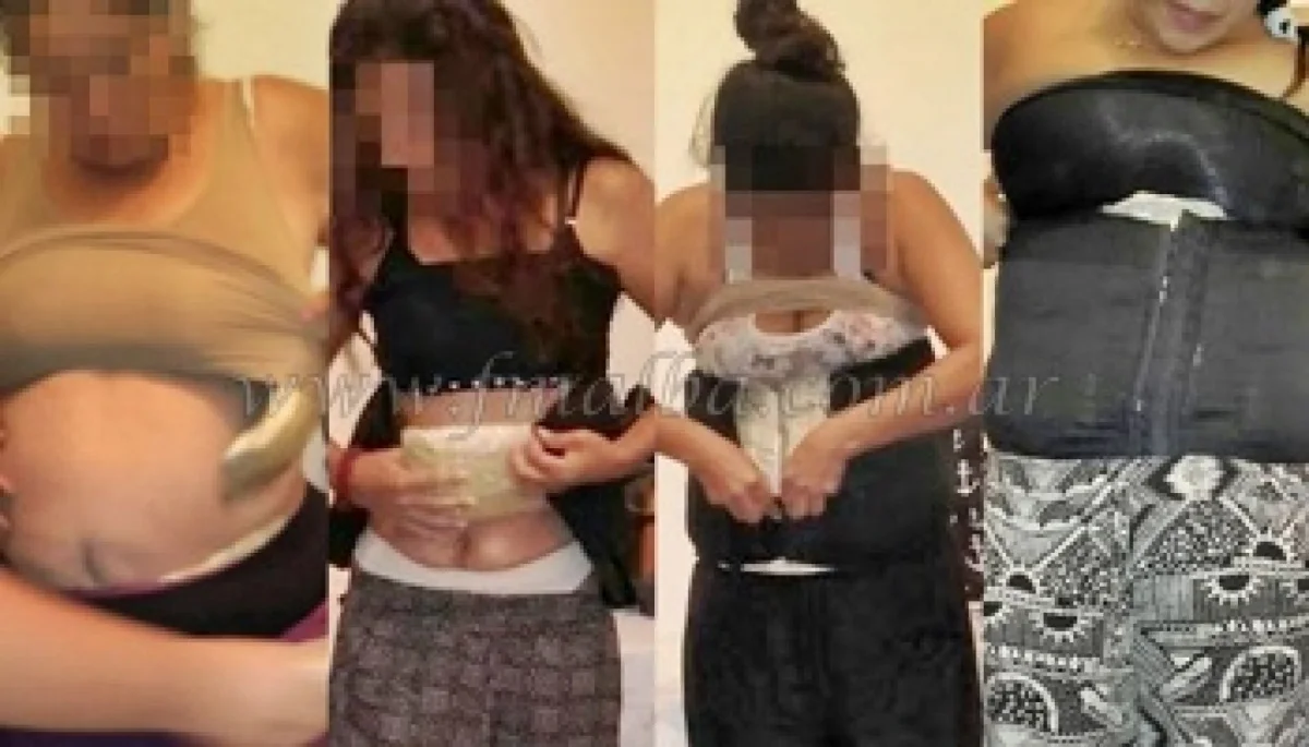 De este modo comenzaron a inspeccionar sus pertenencias y encontraron bajo sus prendas y sujetado con fajas. 29 paquetes de una sustancia blanca.