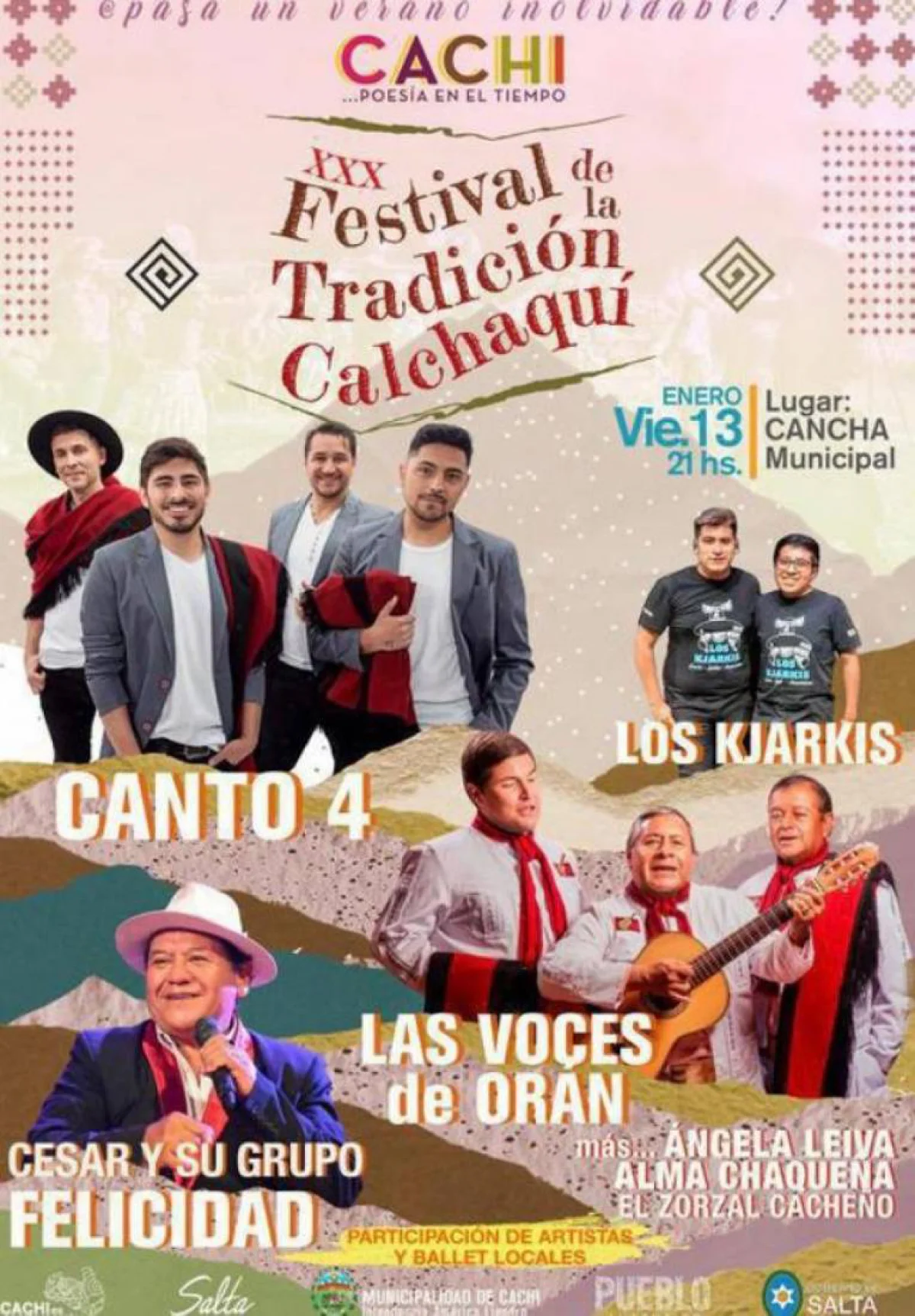 La celebración será el 13, 14 y 15 de enero, el domingo se tratará de un baile popular. En el escenario Ariel Petrocelli pasarán destacados artistas para todos los gustos: Los Tekis, Canto del Alma, Hernán Arias, La Repandilla, Lucía Guanca, Ángela Leiva, Alma Chaqueña, Canto 4, Las Voces de Orán, entre otros.