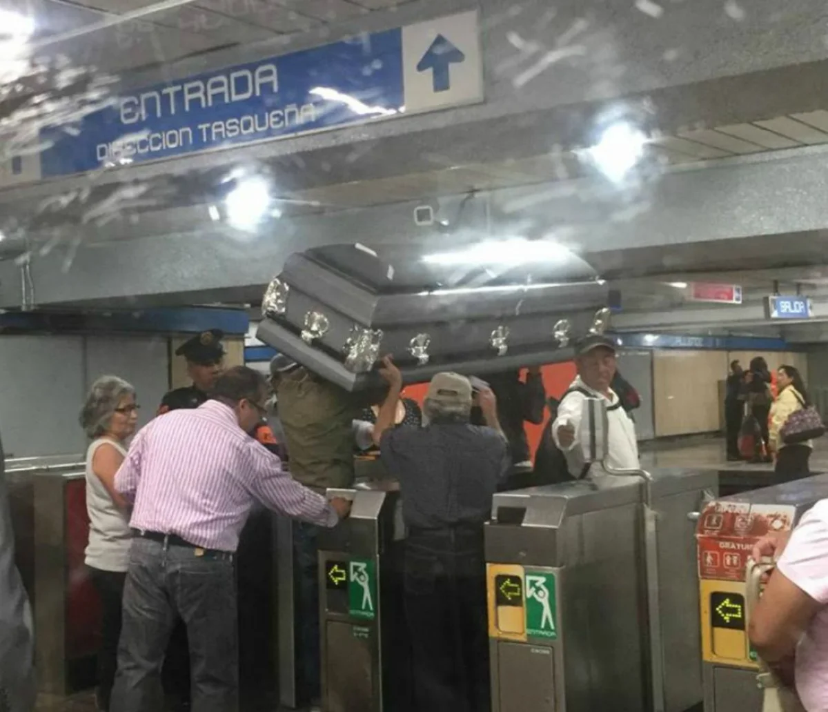 Una familia llamó la atención de todos en el subte de la Ciudad de México al llegar a la estación con un ataúd a cuestas.