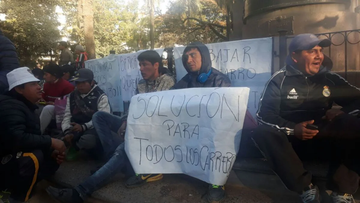 Un grupo de aproximadamente 60 carreros se encadenó en la plaza 9 de julio en pedido de respuestas a su problemática.