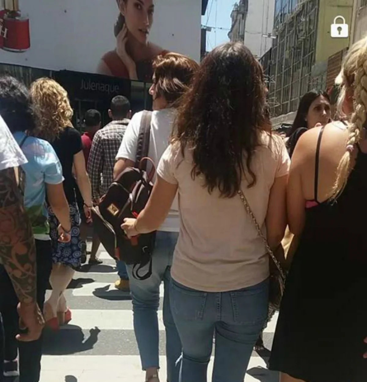 En el video se puede observar como tres personasse ubican detrás de una mujer que lleva su mochila colgada para atrás, y uno de los delincuentes intenta metere la mano en uno de los bolsillos y sustraerle el celular.