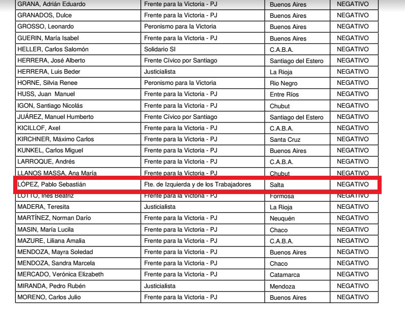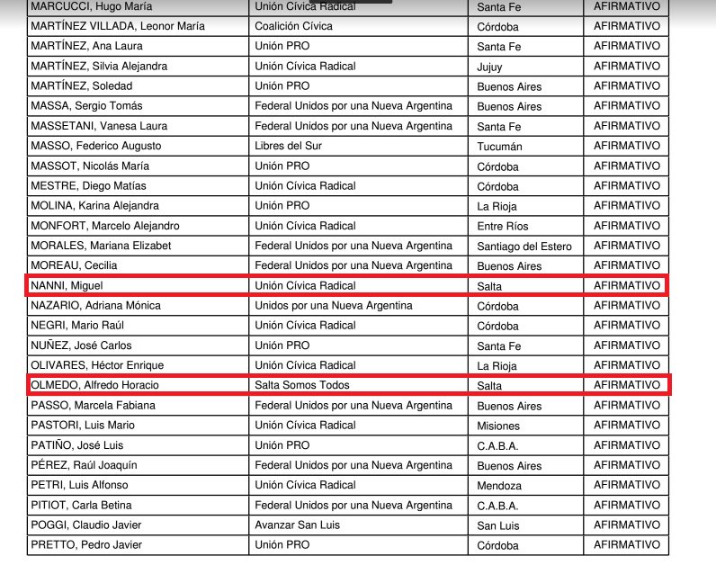 Salta tiene siete diputados a nivel nacional: Pablo Kosiner (PJ), Javier David (PJ), Evita Isa (PJ), Guillermo Durand Cornejo (Unión PRO), Miguel Nanni (UCR) y Alfredo Olmedo (Salta Somos Todos), votaron por el sí a la expulsión de su par De Vido. En tanto, Pablo López (Frente de Izquierda y de los Trabajadores) votó por el no.