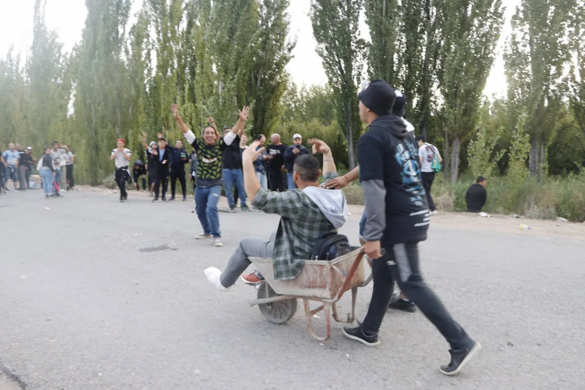 Los testigos del momento cuentan que el grupo de amigos venía riendo y celebrando por la Avenida 1 de Mayo, desde antes de cruzar la entrada al predio, y que no faltaron las caras de felicidad y las bromas de algunos por la carretilla.
