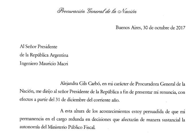 Alejandra Gils Carbó, deja el cargo como jefa de los fiscales y su renuncia se hará efectiva el próximo 31 de diciembre del corriente año.