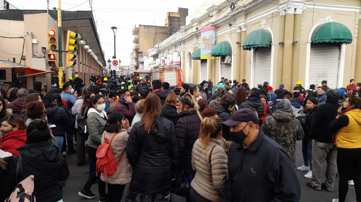 Al menos 5 dotaciones de bomberos trabajan para controlar el foco de incendio en la galeria "Centro Comercial del Norte" de la calle Ituzaingó y San Martín.