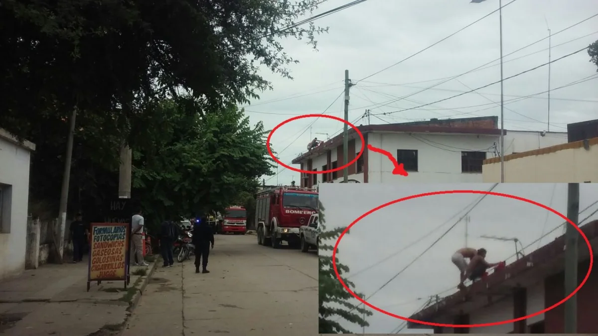 En las imágenes se puede observar cómo los detenidos el techo de la guardia de la dependencia policial local. Los hombres que están en el techo amenazan con tirarse.