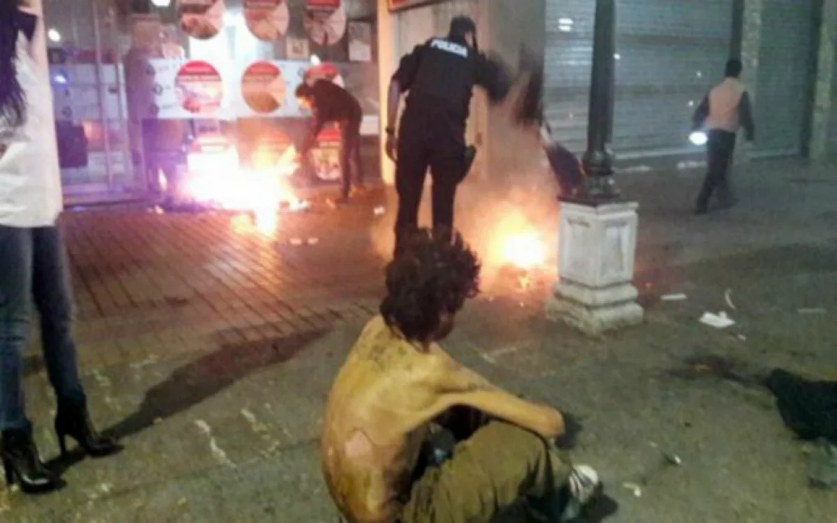 Anoche, en calle Las Heras, entre 25 de Mayo y Chile, en el centro de Mendoza, un grupo de personas prendieron fuego a un hombre que vive en la calle.