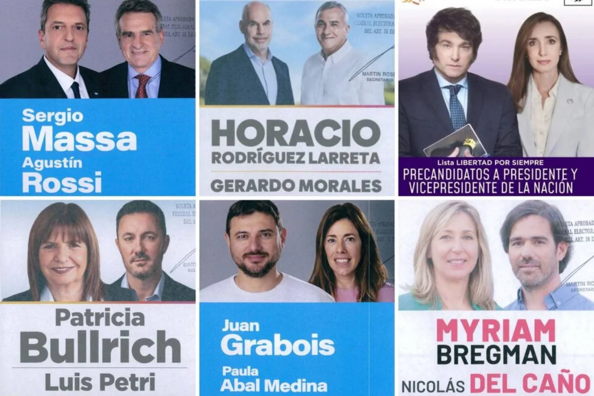 En las PASO 2023 de este domingo 13 de agosto se presentan 22 fórmulas presidenciales. Unión por la Patria (UP) va a internas entre Sergio Massa y Juan Grabois, en Juntos por el Cambio (JxC) la candidatura para las generales de octubre se disputa entre Horacio Rodríguez Larreta y Patricia Bullrich, mientras que La Libertad Avanza (LLA) tiene a Javier Milei como único candidato.