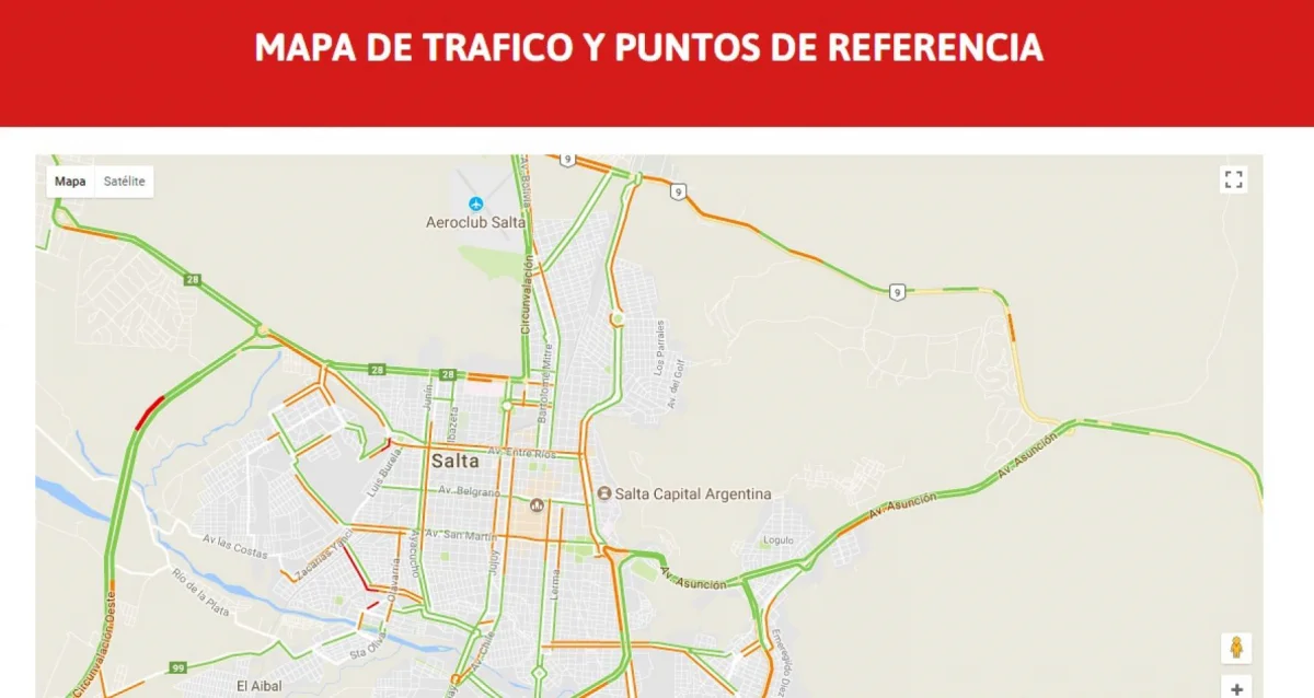 La Municipalidad de Salta puso a disposición de los vecinos un mapa de tráfico en su sitio web para informar sobre el estado del tránsito y los cortes en las calles.