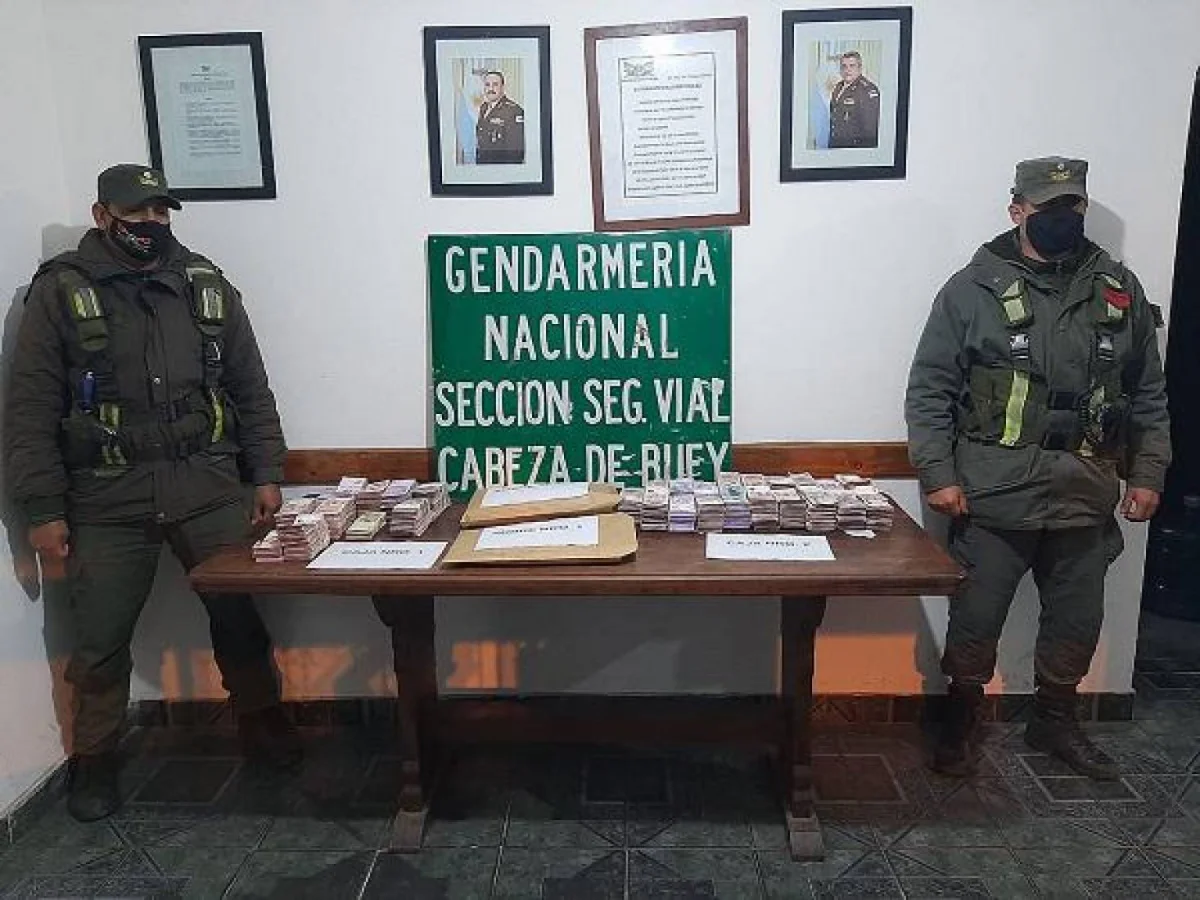 Al momento de la inspección, los uniformados detectaron en el sector de la cabina del conductor dos cajas de cartón que al ser registradas por los gendarmes hallaron en su interior la suma de 1.509.800 pesos argentinos y 757.054,77 en 26 cheques de distintas entidades bancarias.