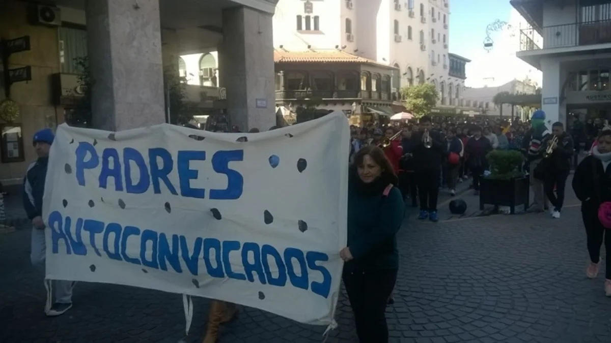 En la mañana de este viernes, un grupo de padres autoconvocados marchó hacia la Plaza 9 de Julio para manifestar su apoyo al paro de docentes.