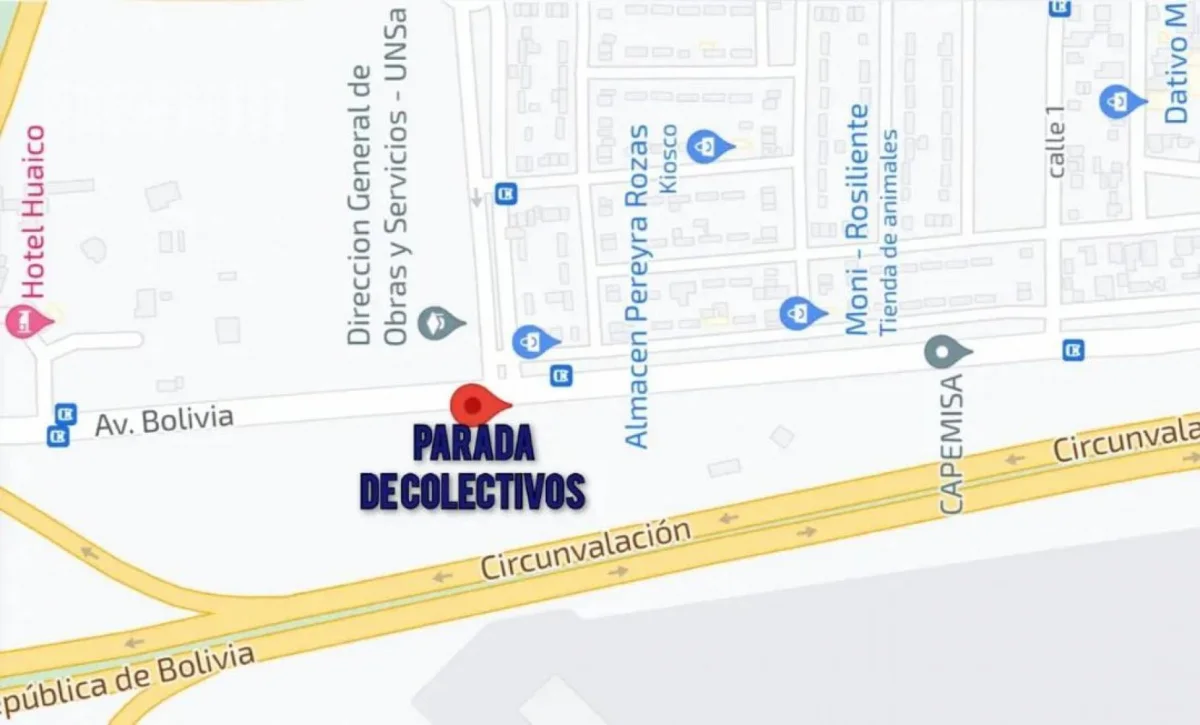 Quedarán habilitadas la paradas anterior (frente al Hotel Huaico) y la posterior (frente al ingreso al barrio P. Rozas primeras etapas.