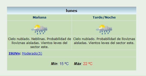El Servicio Meteorológico Nacional informa que a esta hora de la mañana tenemos una temperatura de 15.5°C y se espera una máxima de 22°C. Hay probabilidad de lluvias para todo el día.