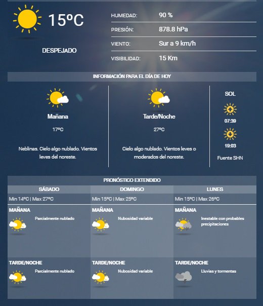 Por otro lado, el SMN señala que para mañana sábado se esperan una máxima de 27ºC y para el domingo 25ºC. Así mismo, informa que estarà parcialmente nublado.