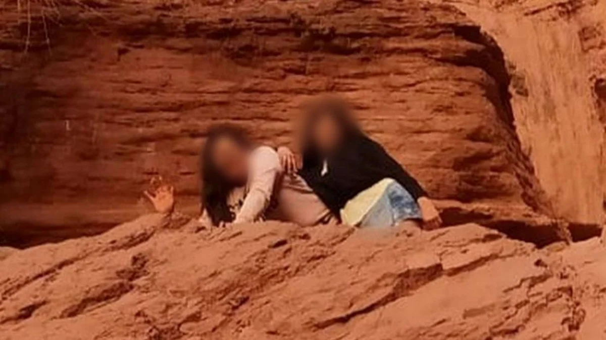 Fue en el rostro de la menor donde se habría plasmado la figura diabólica. La postal fue tomada en "La Garganta del Diablo", en medio de la Quebrada de las Conchas, camino a Cafayate.