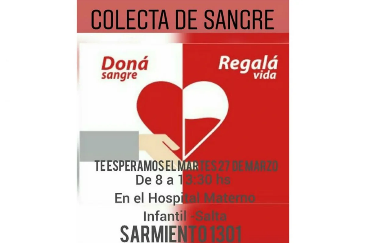 En el día de hoy se realiza una nueva colecta de sangre en el ingreso del Hospital Materno Infantil. Quienes deseen hacerlo podrán acercarse hasta el nosomio hasta las 13.30 horas.
