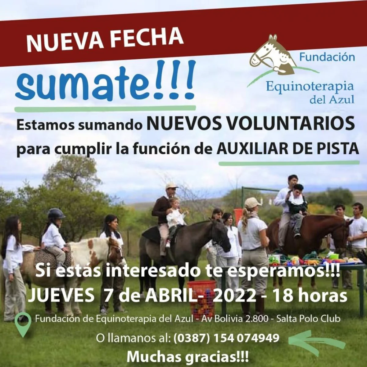 Si estás interesado, podes acercarte este jueves 7 de abril a las 18 horas en Av. Bolivia 2.800 en el Salta Polo Club. También se pueden comunicar al número 0387 154074949.