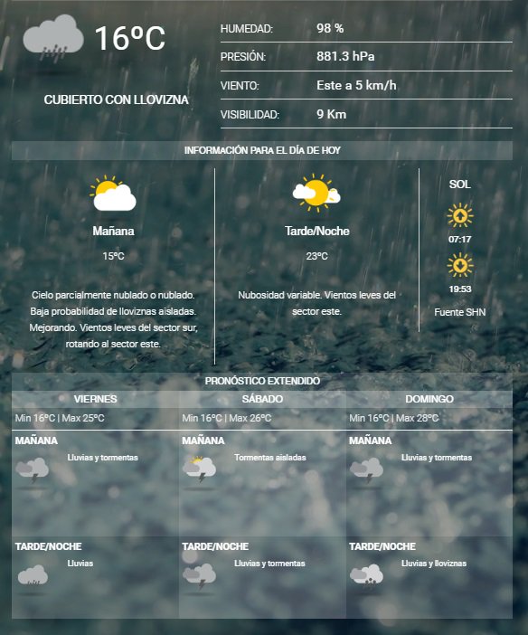 El Servicio Meteorológico Nacional indica que arrancamos la mañana con 16°C y se espera una temperatura máxima de 23°C.