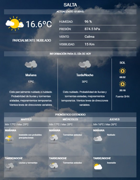 El Servicio Meteorológico Nacional indica que arrancamos la mañana con 16.6°C y se espera una temperatura máxima de 30°C.