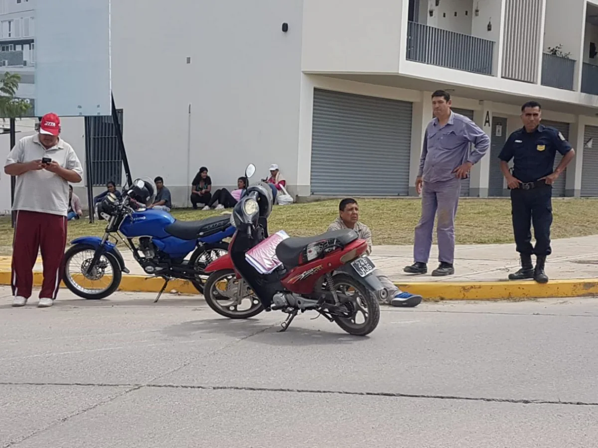 Esta tarde se registró un siniestro vial en una peligrosa rotonda del barrio El Huaico, en el que se vieron involucrados dos motociclistas.