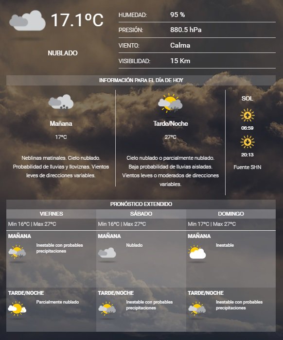 El Servicio Meteorológuico Nacional indica que arrancamos el jueves con 17.1°c y se espera que la temperatura máxima sea de 27°C.