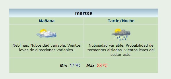 De acuerdo al Servicio Meteorológico Nacional arrancamos el martes con 16.6°C y se espera una temperatura máxima de 28°C. Hay probabilidad de lluvia para la tarde-noche.
