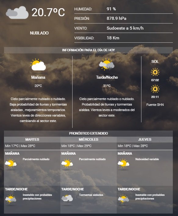 El Servicio Meteorológico Nacional indica que arrancamos la mañana con 20,7°C y una humedad de 91%. Se espera una temperatura máxima de 31°C.